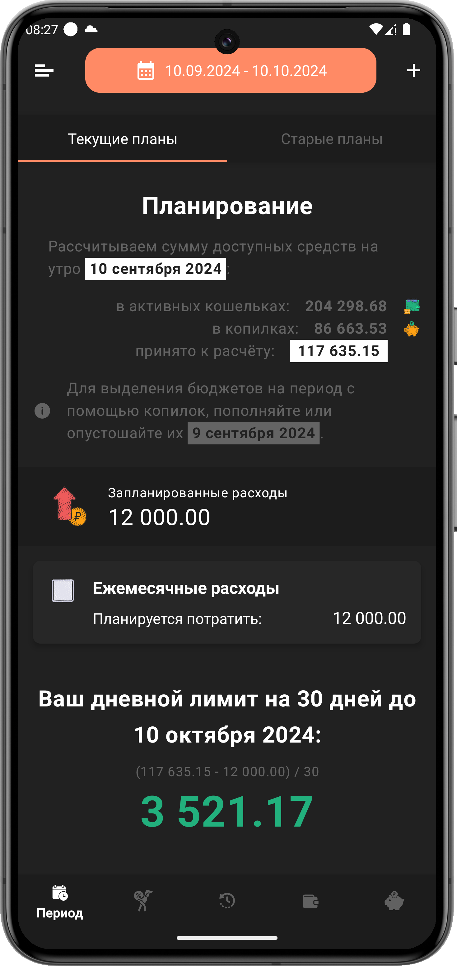 • Быстрое и понятное планирование с расчётом дневного лимита.